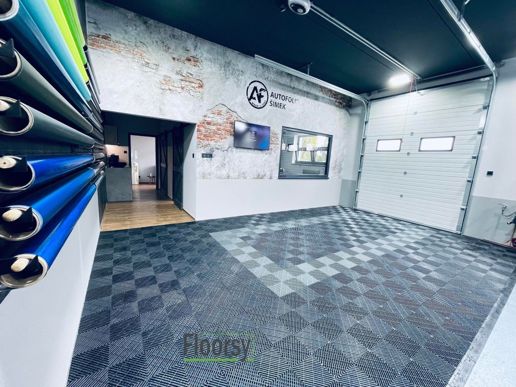 Či už chcete decentný profesionálny vzhľad alebo výraznejší štýl, táto podlaha vám to umožní. Vo väčších garážach, servisoch či detailingových štúdiách si vďaka farebným kombináciám jednoducho vyznačíte parkovacie miesta alebo pracovné priestory.